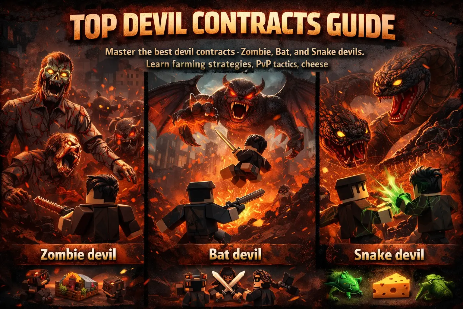 Master the best devil contracts in Devil Hunter - Zombie, Bat, and Snake devils. Learn farming strategies, PvP tactics, and cheese methods.